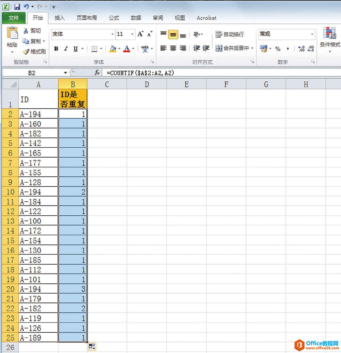 在单元格 B2中输入公式时,指定与第二参数一致的单元格查找范围的第一参数为“$A$2:A2”,也就是单元格 A2。因此,得出的结果自然为1。