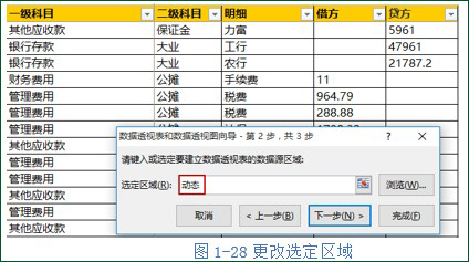 Step 03如图1-28所示,将选定区域改成动态,单击“完成”按钮,这样就实现了数据源动态更新。
