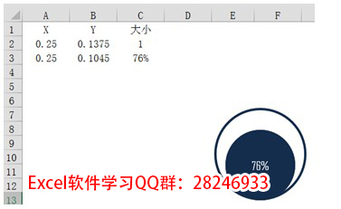 扩展: 气泡图与散点的区别在于:散点有XY坐标,但添加的散点数据点均为一样大小,可与大部分图表组合,作为辅助,气泡图比散点多了一个大小维度,可完成三个维度的数据展示,但不能与其他图表组合成图。 Y轴的数据,大圆的半径为0.1375的话,换算小圆半径则需要当前百分比/(1/大圆半径)得到小圆半径,气泡的XY值为气泡图中心点位置。。。 选中数据后【插入】→【气泡图】