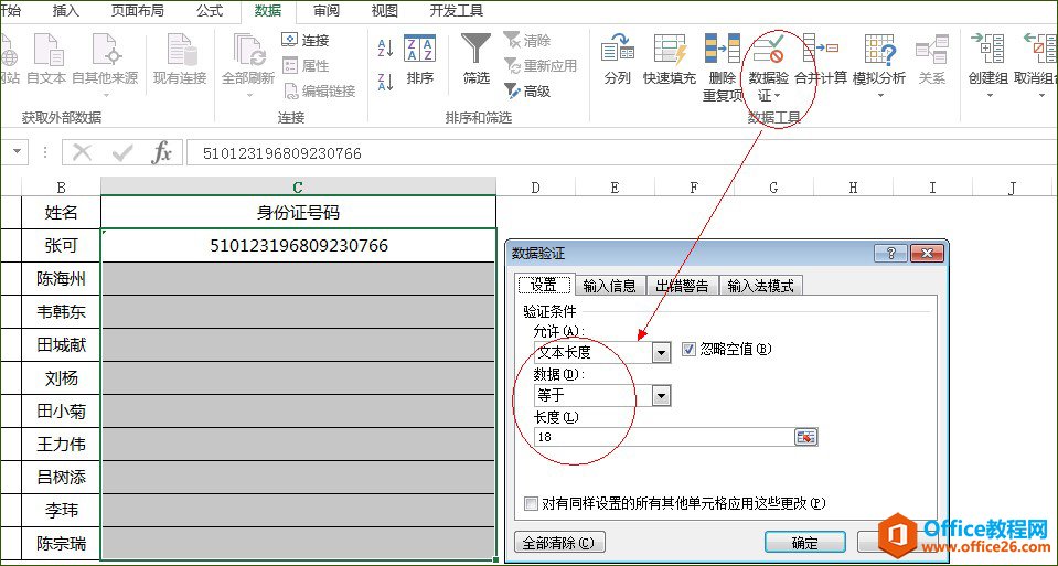 上面小伙伴的提问,想想当初学习Excel的时候,也是常遇到这些问题,动不动就怀疑软件出问题了,还记得师傅告诉我,遇到问题,不要轻易怀疑Excel软件出了问题,一般都是自己木有学好的过。 上面的提示框,其实是数据有效性出错警告。原因就是为了确保数据录入的规范性,在C列做了数据有效性设置,确保录入的数字都是18位数字,否则就会报错。