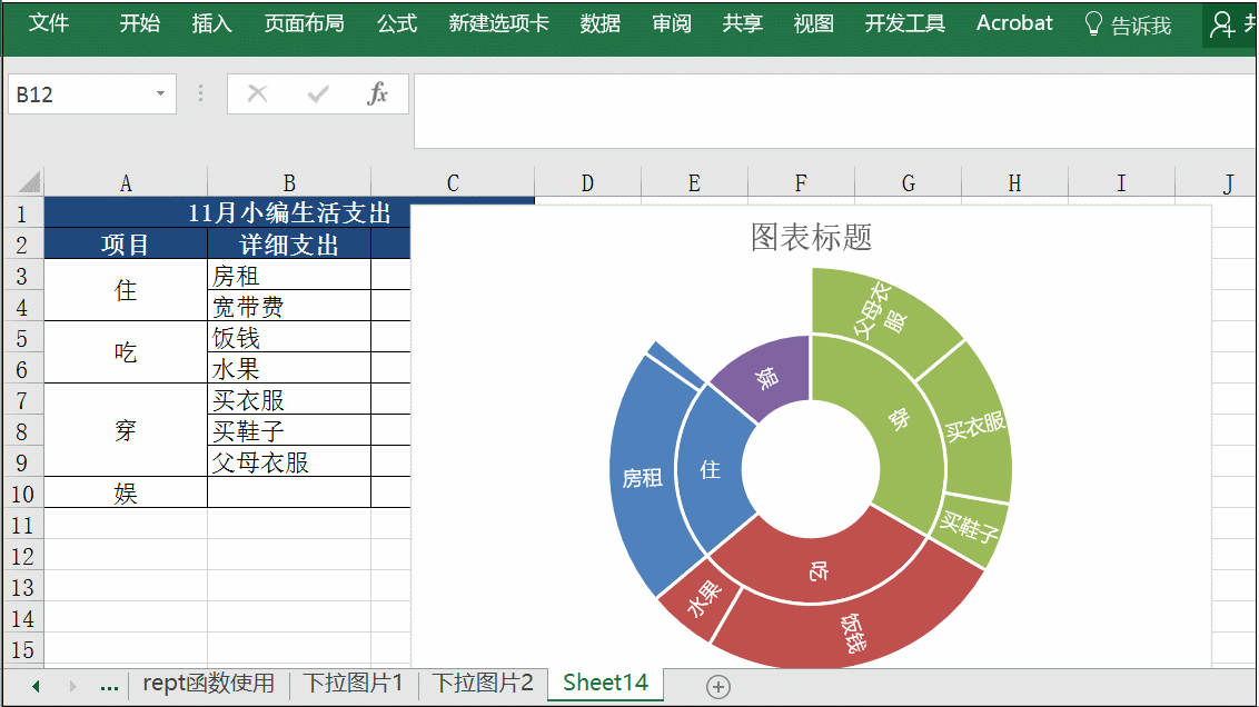 今天帮主以“11月小编生活支出”为例,说说如何制作旭日图?