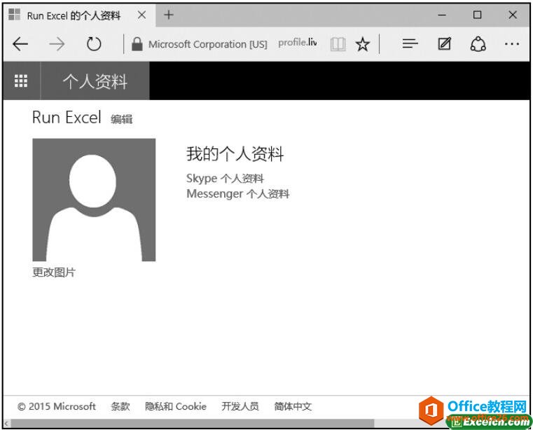 7、 打开个人资料页面,单击该页面中的【更改图片】超链接,如下图所示。