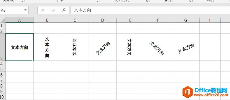 Excel文本显示方向有很多种,默认的方向是水平方向显示。