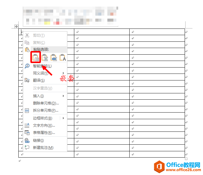 嵌套是指Excel表格整体插入到word的一个单元格中,并且表格的样式不变