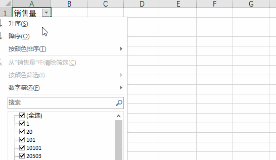 如果筛选“101”,需给101加上英文双引号,如下动图: