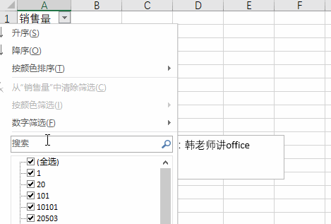 今天韩老师来讲述特殊筛选方式,主要是通过数字搜索: