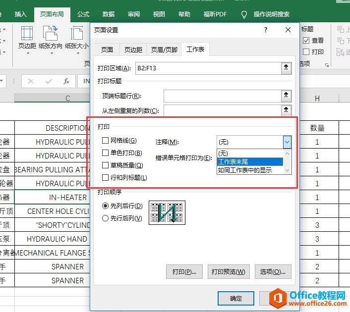 Excel2016 其他打印参数的设置