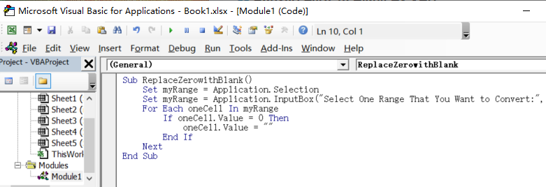 您还可以使用Excel VBA宏来实现在所选单元格区域中将空格替换为空白的相同结果。只需执行以下步骤: