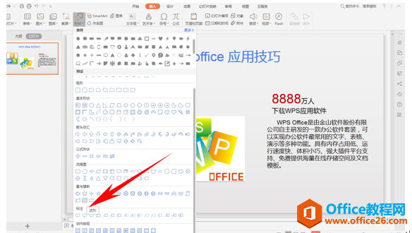 然后我们单击工具栏插入下的形状,在下拉菜单当中选择波形形状。