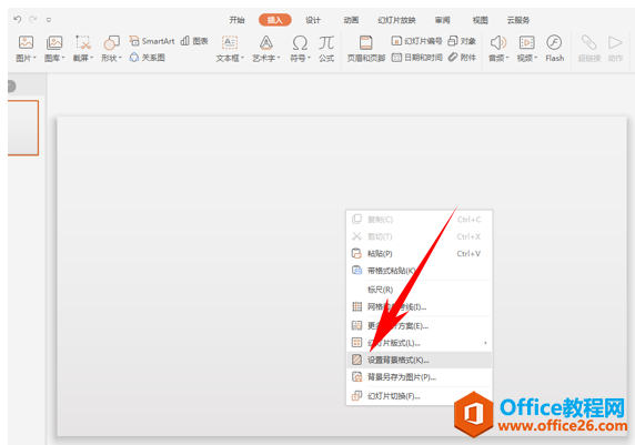 首先,我们为幻灯片设置背景,单击右键选择设置背景格式。