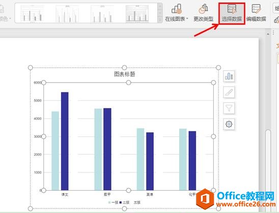 确定后,我们再次选中图表,点击图表工具下的选择数据选项,如图2