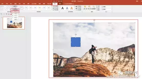 这样后,图片和形状就成为了一个整体,我们只能看到图片,形状就不见了,但并不代表它真的不见了。