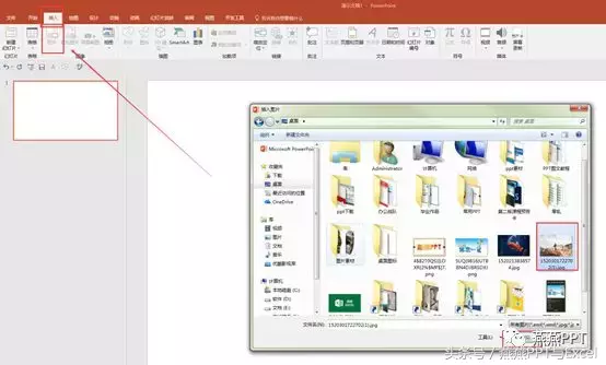 “插入”-“图片”,在弹出的图片对话框中,找到你的图片放置位置,选中后,点击“插入”,图片就放到我们的PPT页面中了。