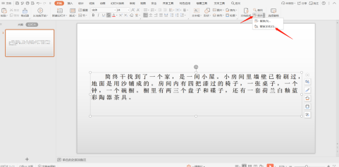 打开PPT文档,如图。首先要确认PPT中使用了什么字体,选中文字会展示字体类型,譬如宋体。