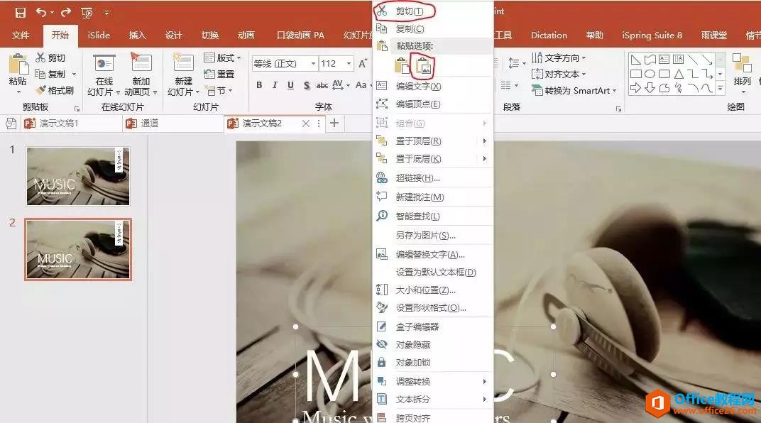 选中MUSIC这个文本框,先右键剪切,再右键粘贴为图片。