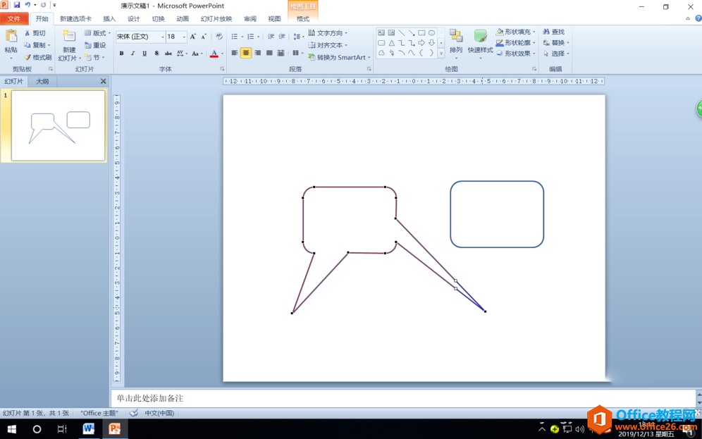 我们知道,PPT的“形状”有“标注”选项,从这里可以在幻灯片中插入多种样式的标注,但是这里的标注都只有一个指示箭头,如果插入的标注需要两个或多个指示箭头该怎么办呢?下面我们就来解决这个问题。
