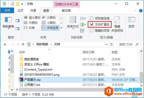 这时,你可能还会有个疑问,修改文件的后缀名时,为什么没看见文件后缀呢?这是因为,电脑系统会默认隐藏一些常见文件的后缀名,所以需要我们设置将其显示出来。方法:在文件夹上方,选择“查看”选项卡,选中“文件扩展名”选项即可。