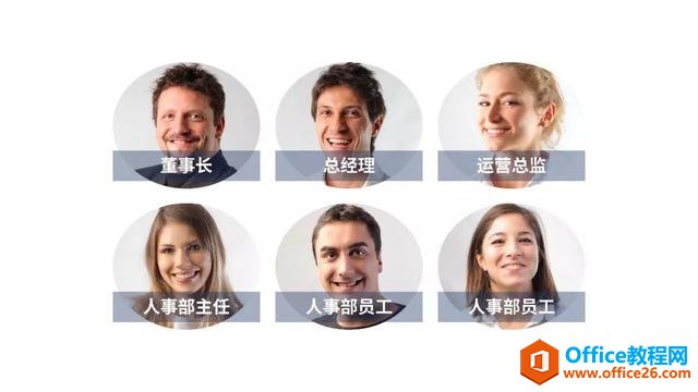 如果想做出圆形的成员介绍图,就得反过来先插入 SmartArt 版式,调整比例为1:1、更改形状为圆形后,再将图片加载。