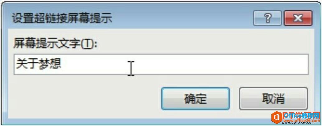 步骤4、设置超链接屏幕提示。在打开的“设置超链接屏幕提示”对话框中输入需要的屏幕提示文本,单击“确定”按钮,如图4所示。