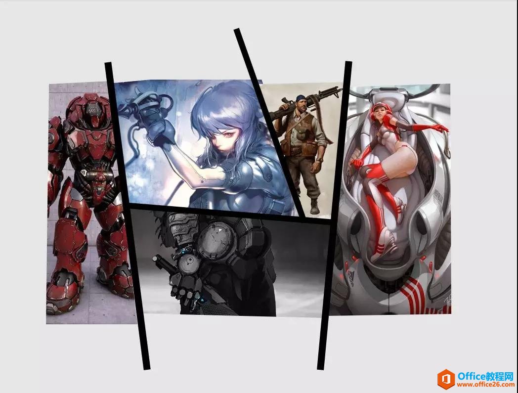 一看这个图形,原来是星海城的漫画图集做的PPT,里面用到网格状排版方式。单这种网格呢,不是方形,是类似蜘蛛侠一眼的网格状,牛闪君教教大家如何来进行排版制作。