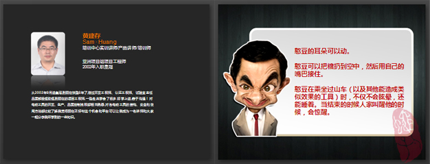 这是Articulate 官方的样例中的PPT页面,这种方法也值得尝试。不管如何总比你贴张老师的照片,写几个字效果好很多吧。