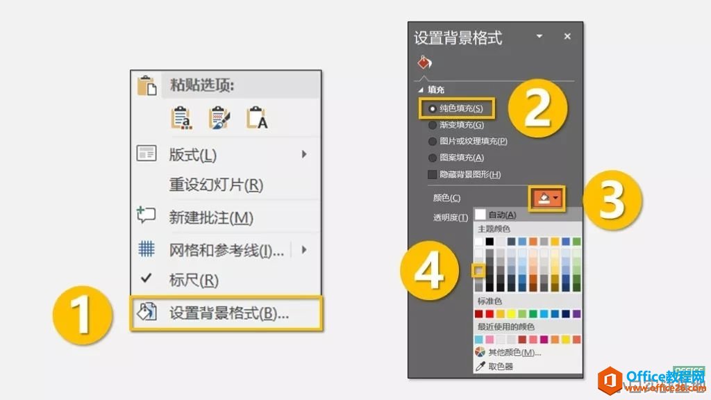 右击PPT桌面-点击【设置背景格式】-【纯色填充】-选择【灰色】即可:
