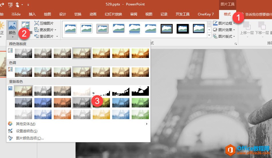 思路1:利用图片的颜色效果,按照下图的步骤,秒秒钟搞定。