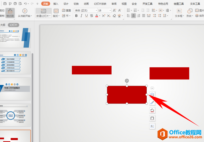 双击后,单击图形即可快速设置为相同格式,如下图所示,三个图形都变为填充色红色,无轮廓颜色的长方形了: