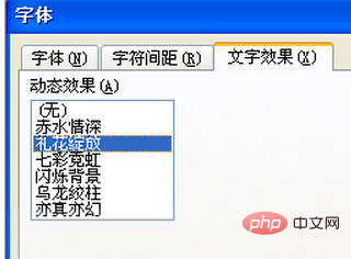3、弹出字体对话框,选择文字效果选择卡,在动态效果处选择礼花绽放即可,如图所示。