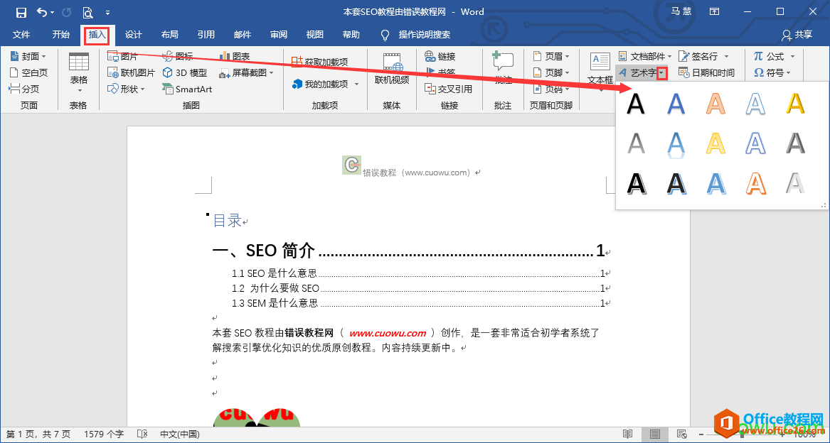 2021-10-06 09:23:26 56 word设置艺术字效果