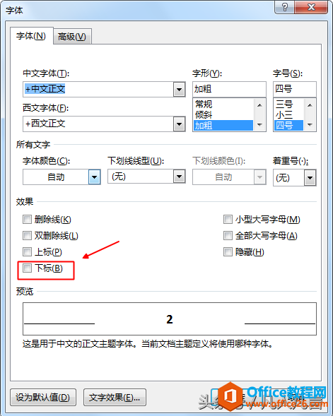 2.点击字体组的下标按钮