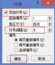 第三步,勾选“添加行号”,根据需求设置“行号间隔”等参数。