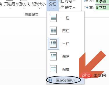 3、不过此时这三栏的宽度默认为同样的,如果想要更改某一栏宽度,那么这次我们勾选分栏菜单最下方的“更多分栏”;