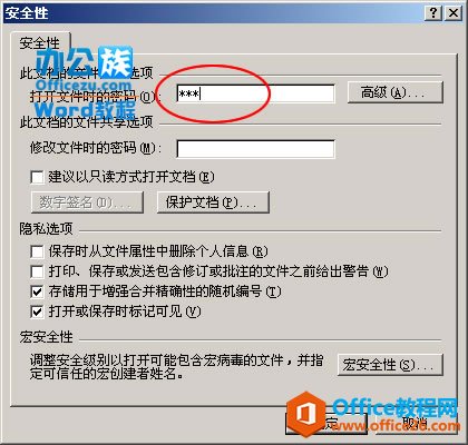 在弹出的“选项”窗口中进入“安全性”,然后在“打开文件时的密码”中设置密码,单击确定后重复输入一次密码,最后将文档保存一下就设置完成了。