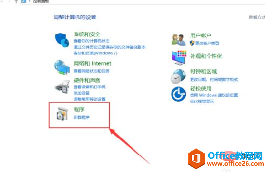 2、进到控制面板主页面之后,我们在里面找到“程序”并点击,进入下一步操作。效果图如下所示。