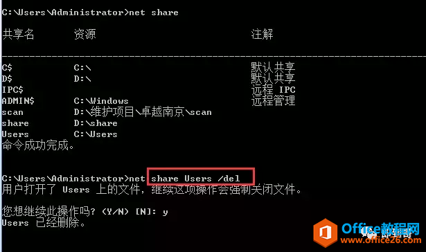 7 访问电脑上使用net use 可以查看现在已经连接电脑状态。