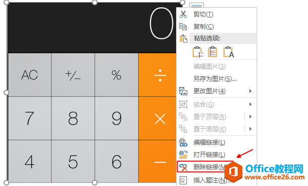 从网络上下载或复制的图片,一般自动带有链接。如果你不需要该链接,可以删除。