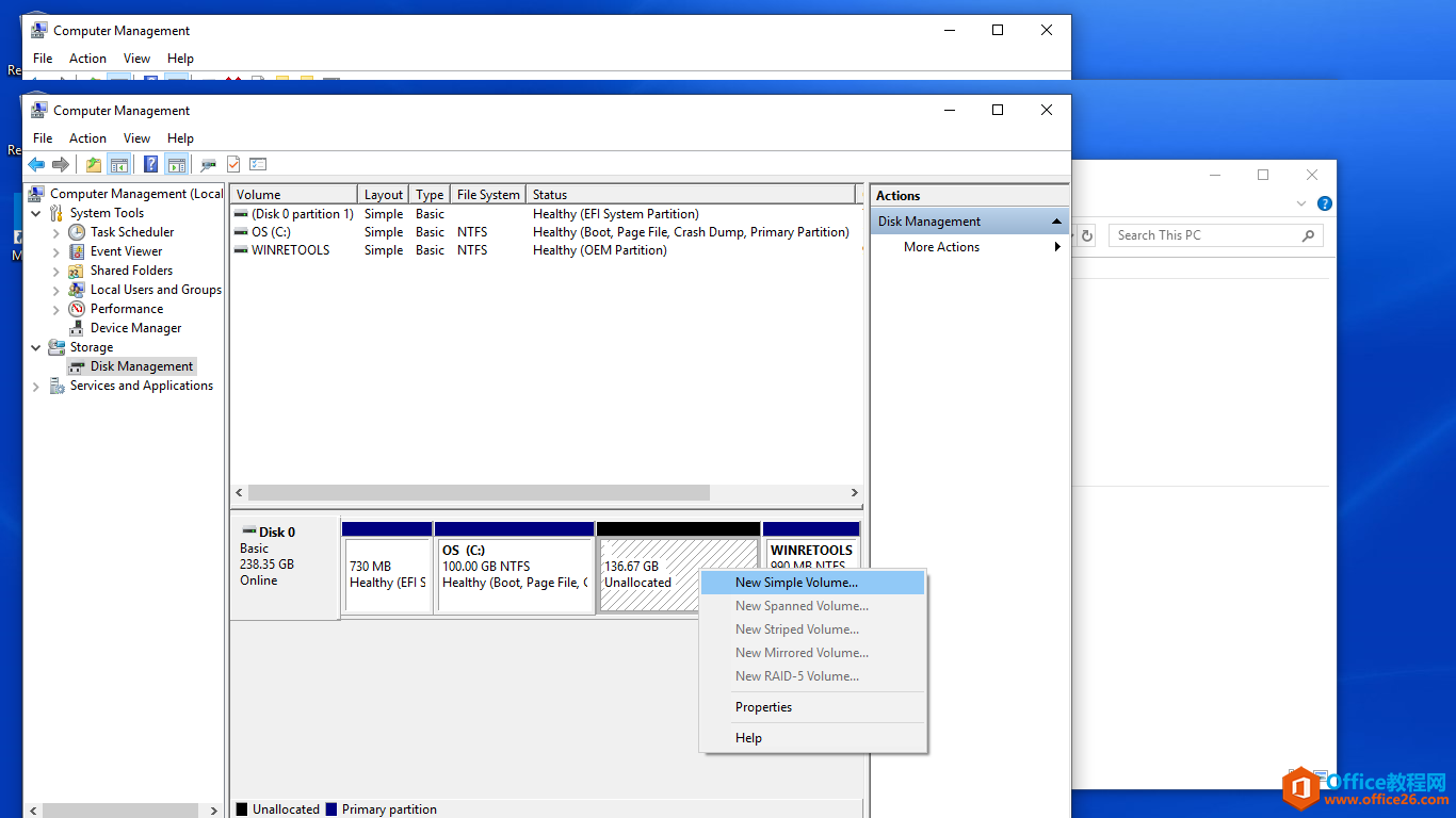 还可以看到一个unallocated(未分配)136.67GB空间。