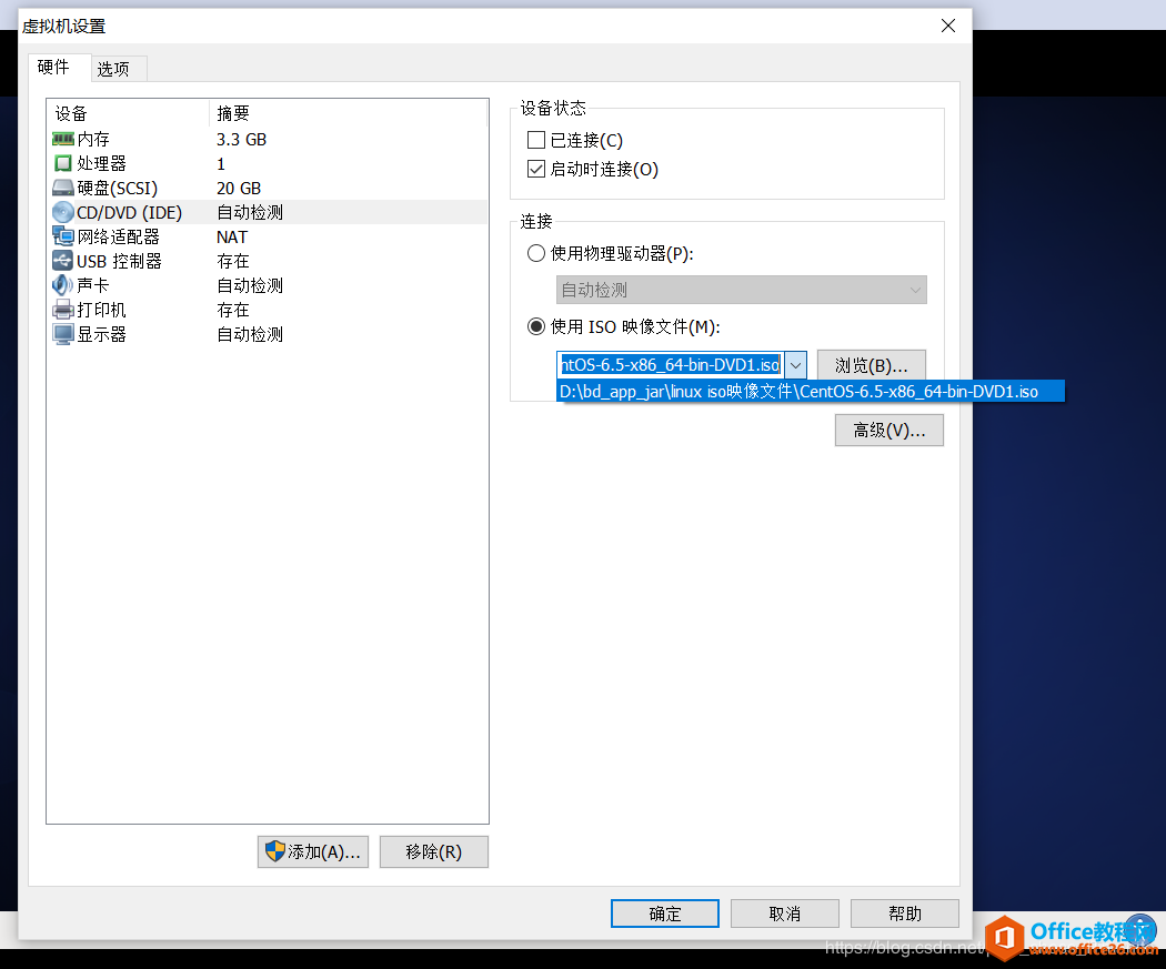 CD/DVD(IDE)–连接方式,不要使用使用自动检测;改为使用ISO映射文件,选上iso映像文件(原来为空),重启虚拟机