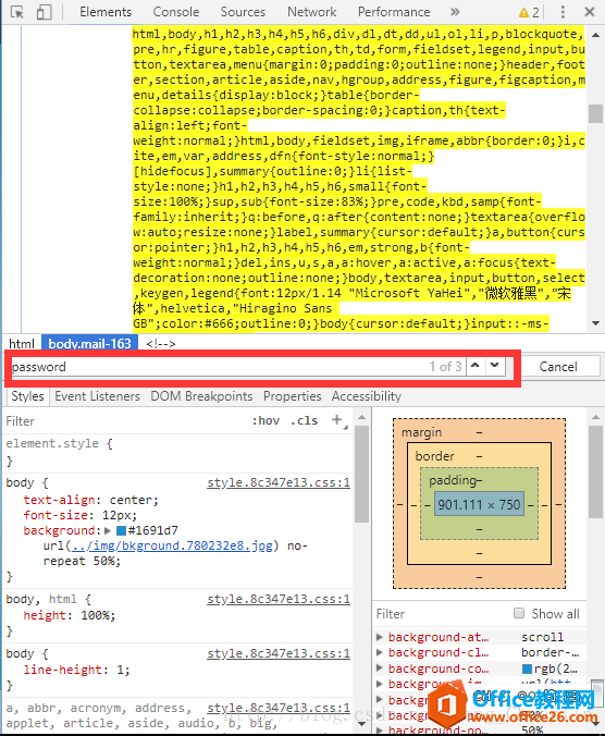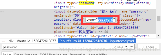 3、按Ctrl+F在网页源码中搜索“password”,会查找到好几个“password”,我们需要定位到与密码输入框有关的那一个“password”。
