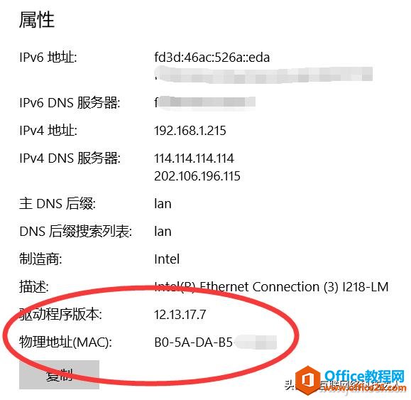 关于自己设备的mac地址,在Win10中可以点击自己的网络图标(任务栏右下角),然后在以太网/WLAN中点击自己的已连接网络下拉,就可以看到网络设备的属性信息了。找到自己的mac地址信息,填写到上图中路由器的mac地址列表里就可以(每个路由器界面不同,需要自行查找一下)。