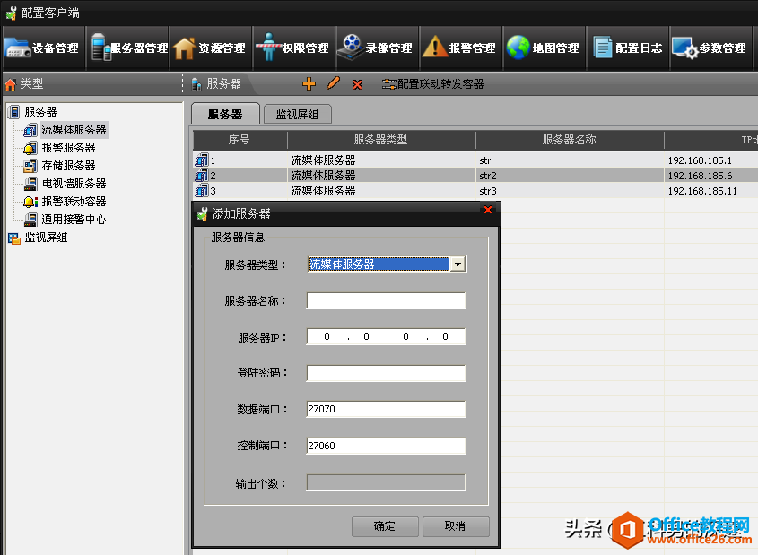 服务器的添加在,"配置客户端"中的."服务器管理"中.选择"流媒体服务器",在右侧空白处,右击.
