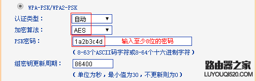 下面无线安全选项:选择WPA-PSK/WPA2-PSK,PSK密码后面填入不小于8位的无线密码。也就是我们所说的WIFI密码。建议数字+字母+特殊符号组合,现在蹭网让人很纠结的。填写完成后点写一步。