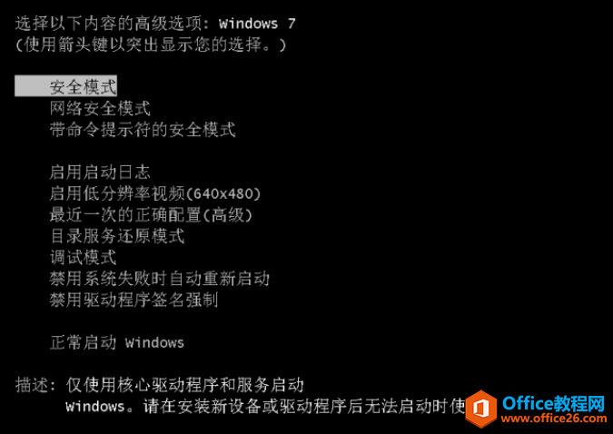 如果win7系统无法入安全模式,还可以选择“最近一次正确配置(高级)”来尝试是否可以正常进入系统。
