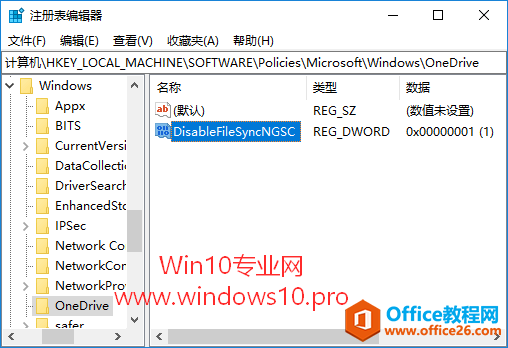 如果以后想要恢复OneDrive功能,把DisableFileSyncNGSC值的数值数据修改为 0 ,或直接删除该值即可。