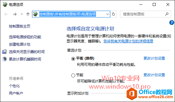 点击“相关设置”下的“其他电源设置”打开“电源选项”设置窗口。如图: