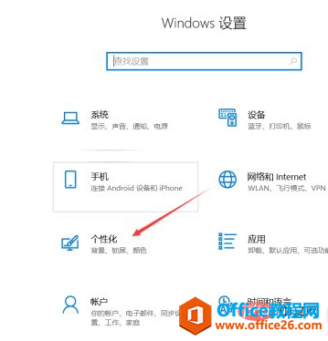 在个性化界面里,选择“任务栏”,跳转到任务栏界面。如图: