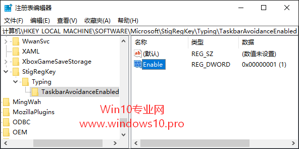 按照同样的方法在StigRegKey项下新建Typing项,再在Typing项下新建TaskbarAvoidanceEnabled项。如图: