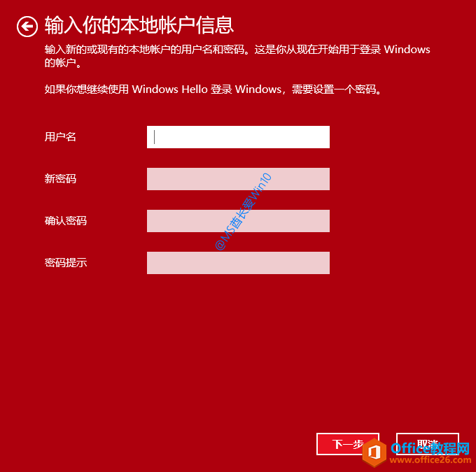 因为MS酋长启用了PIN登录,所以这时验证的是PIN码。输入正确的PIN码,点击“确定”,就会弹出“输入你的本地帐户信息”窗口。如图: