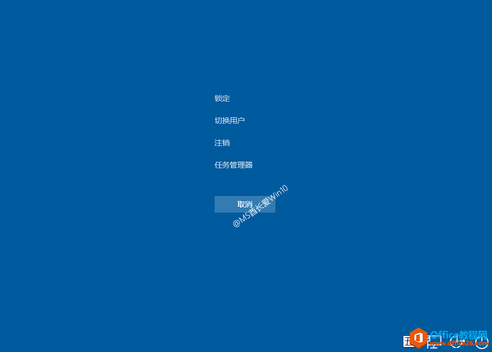 在Windows10中,按Ctrl + Alt + Del组合键打开的是如下图所示的蓝底白字的安全选项界面: